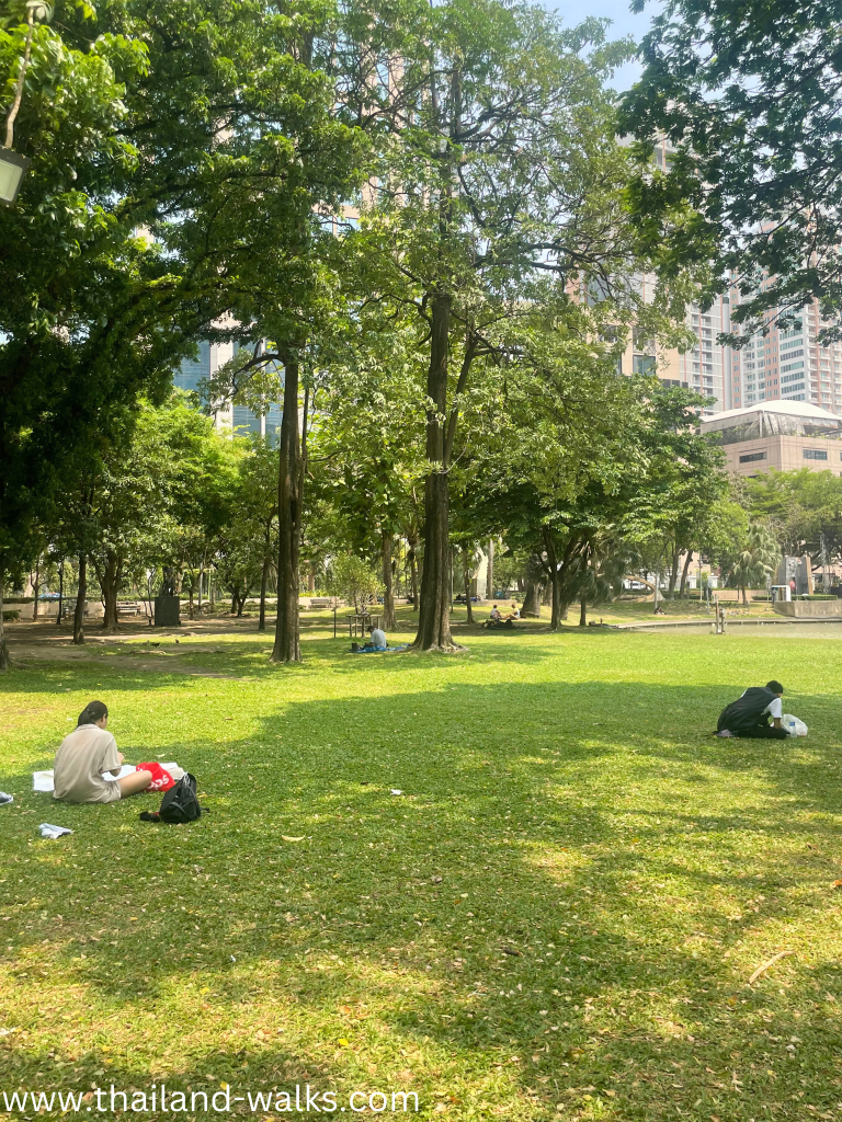 The focal point centers around a large pond in the mesial bowels of the park. This epicenter of the park is the central gathering point of most of its occupants in order to stretch out in the grass and lounge under a tree to avoid the unforgiving Bangkok sun.