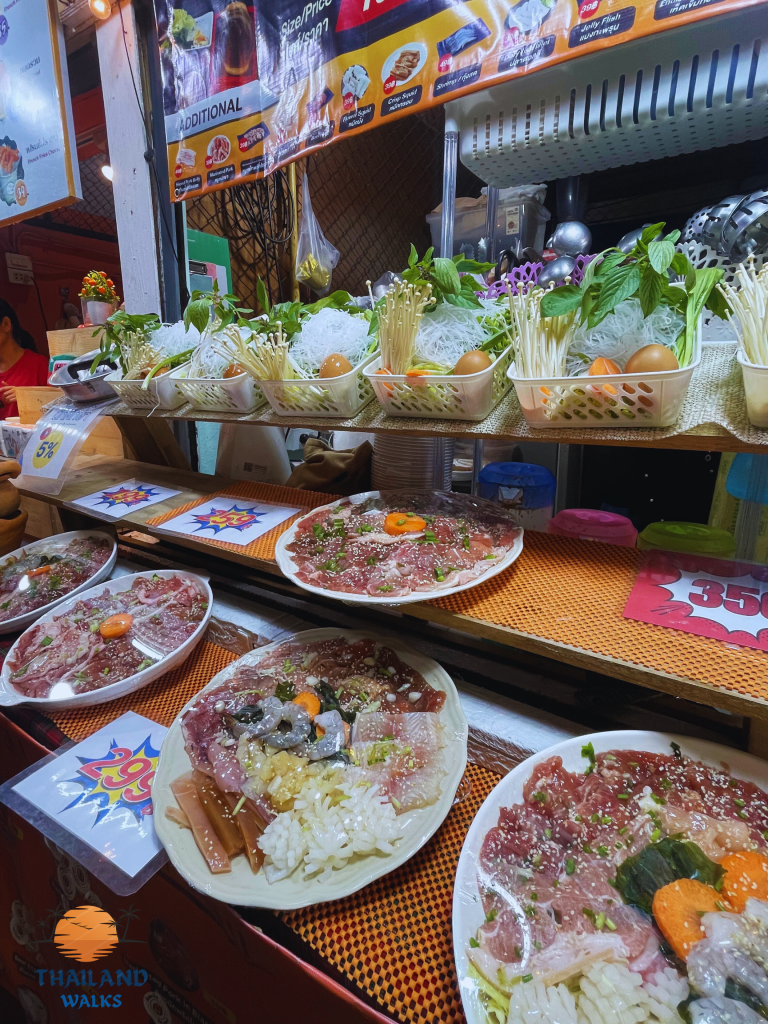 However this is just a mere sidequest. At the heart of the market is a fortress of stalls ranging from slow cooked pork ribs, plates of pad thai and baskets of crustaceans for you to engorge on while listening to covers of 1980s American and European pop classics.