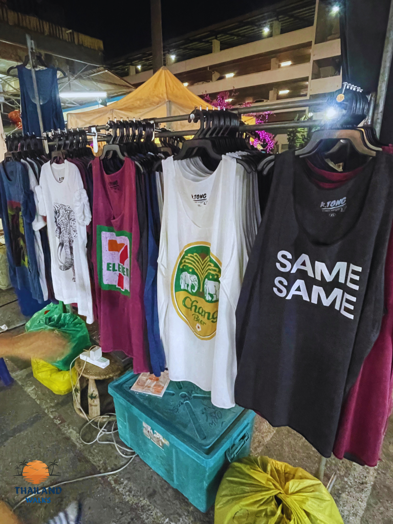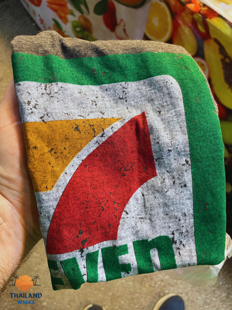 One final note, the locals were very charming. On the perimeter of the market was an aunt who persuaded me to do my farang diligence and purchase two sleeveless Chang and 7-11 shirts. After stabbing my stomach several times, she determined that I was a 4XL. All that walking, the brief surge of self confidence, destroyed in a single second of aunties unrelenting honesty. I bought both shirts for 300 Baht (200 each normal price 😉